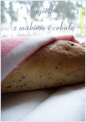 Jako że tego dnia byłam daleko od obiektu tulenia, postanowiłam, że upiekę bułeczki. Już samo stwierdzenie: „postanowiłam, że upiekę bułeczki” tchnie optymizmem i daje nadzieję. Do pracy zabrałam się, gdy zapadł zmrok, bowiem od pieczenia bułeczek jeszcze lepsze jest pieczenie bułeczek nocą. Wybrałam dwa liskowe przepisy: na bagietki z cebulką i makiem oraz bułeczki do hamburgerów (o nich innym razem).