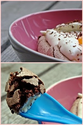 Uwagi: 1. Ta beza jest trochę wytrawniejsza. Dzięki (albo przez)czekoladzie wewnątrz jest bardziej ciągnąca. Następnym razem upiekę ja tylko z kakao, bo czekolada w środku - choć dobra - wydaje mi się tu zbędna.