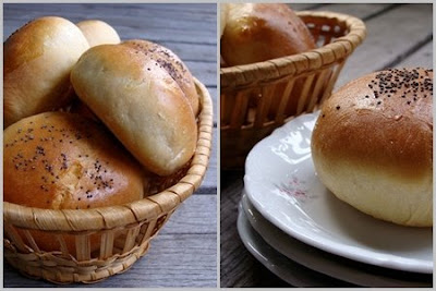 Dlaczego moje bułeczki nie przypominają tych hamburgerowych? Pewnie dlatego, że zbyt słabo je spłaszczyłam. I dlatego, że – z braku sezamu – posypałam je makiem, co przypieczętowało ich śniadaniowy charakter.