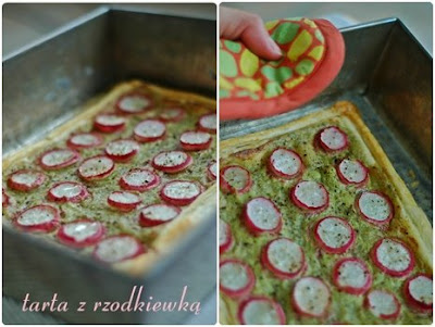 2. tarta rzodkiewkowa to moja radosna twórczość własna (śmietankowe smarowidło wzięłam od Małgosi), znalazła się tu ostatnia partia rzodkiewek z mojej grządki; jako że rzodkiewka smakiem przypomina nieco kalarepkę, pomyślałam, że upieczone plasterki tej pierwszej będą mi smakowały; nie myliłam się, rzodkiewka mnie nie zawiodła i bardzo miłokomponowała się z wyłożonym serową masą ciastem francuskim;