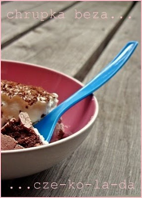 Uwagi: 1. Ta beza jest trochę wytrawniejsza. Dzięki (albo przez)czekoladzie wewnątrz jest bardziej ciągnąca. Następnym razem upiekę ja tylko z kakao, bo czekolada w środku - choć dobra - wydaje mi się tu zbędna.